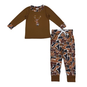 X107 نمط جديد للأولاد بأكمام طويلة بدلة شتوية مموهة بنطال برباط تصميم عيد الميلاد الأيل تحديد المواقع بدلة بالجملة