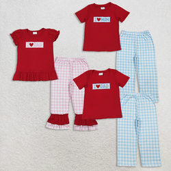 D1001 الصيف التطريز I Love Mom قمصان أولاد رضع فحص السراويل مجموعات ملابس بيع بالجملة البوتيك ملابس الأطفال RTS