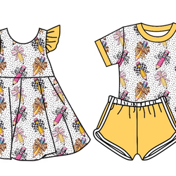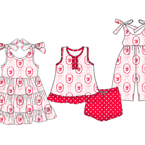 طقم شورت قصير الأكمام للفتيات الصغيرات شورت بأكمام قصيرة من 5 Eta 4-6week تصميم الأسرة