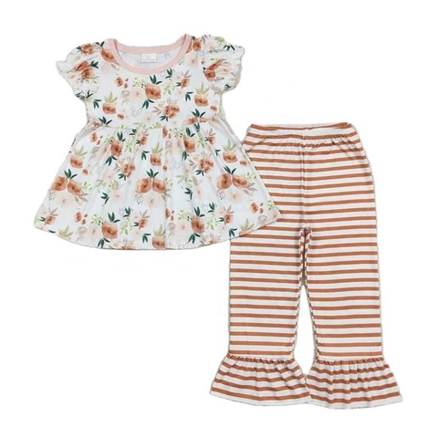 7,21 chico ropa infantil dos piezas bebé niña Floral manga corta túnica volantes rayas pantalones niños niño flor traje