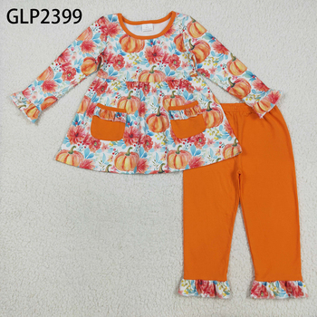 YY 8,22 Conjuntos de ropa para niñas pequeñas Otoño Calabazas Bolsillos Túnica Legging Pantalones Conjuntos