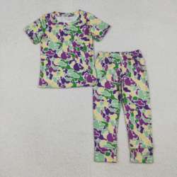 X10.23 BSPO0584 Ropa occidental Púrpura Amarillo Verde Mardi Gras Conjunto de manga corta Niño Venta al por mayor Niños Pijamas Ropa