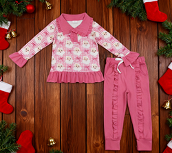 Z1009-21 GLP2932 Kids Girls Outfit Long Sleeve Top With Pants Set Children Christmas Clothes