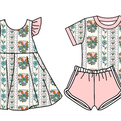 8.05 Custom Each Style Moq 5 Eta 4-6week Sibling Sisters Baby Girl Short Sleeve Shorts Sets Dress Match Family Design