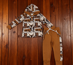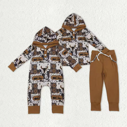 Z1014-07 BLP1238 all'ingrosso vestiti del bambino alpino testa di toro geometrico con cappuccio pantaloni a maniche lunghe Set abbigliamento Boutique per bambini