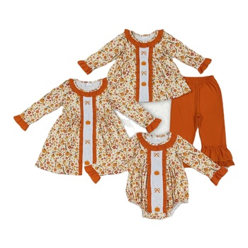 GLP2361 all'ingrosso da bambina vestito coordinato con fratelli ricamati a maniche lunghe di zucca abbigliamento Boutique estivo per bambini