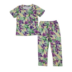 Z1016-03 BSPO0584, оптовая продажа, детская одежда, карнавальные зеленые камуфляжные штаны с коротким рукавом, пижамный комплект, детская одежда