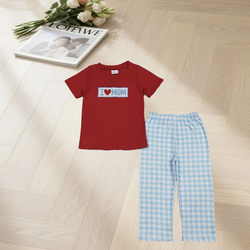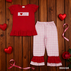 Z1021-01 GSPO2072 Kids Girls Outfit Short Sleeve Top With Pants Set Children Valentine's Day Clothes