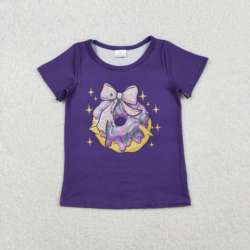 Z1016-09 GT1252 Wholesale Children Boutique Clothing Mardi Gras Bow Pattern Donut purple Short-sleeved Top Baby Tshirts