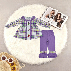 YY 10.18เสื้อผ้าเด็กผู้หญิงลายหมากรุกครอว์ฟิชมาร์ดิกราส์ชุดเสื้อผ้ากางเกงแต่งระบาย