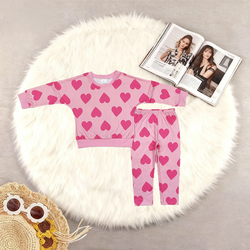 YY ชุดเสื้อผ้าเด็กผู้หญิง, ชุดเสื้อผ้าเลกกิ้งหัวใจวาเลนไทน์สีชมพู10.18